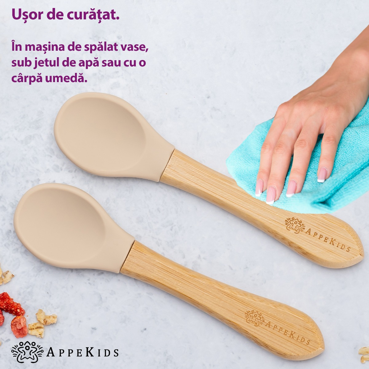 _x000D_De ce sa alegi setul de lingurite din bambus cu varf din silicon pentru bebelusi de la AppeKids?