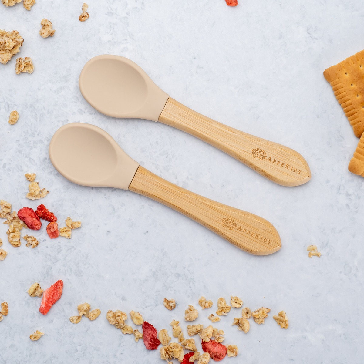 Set Lingurite din bambus, AppeKids - Bubble Beige