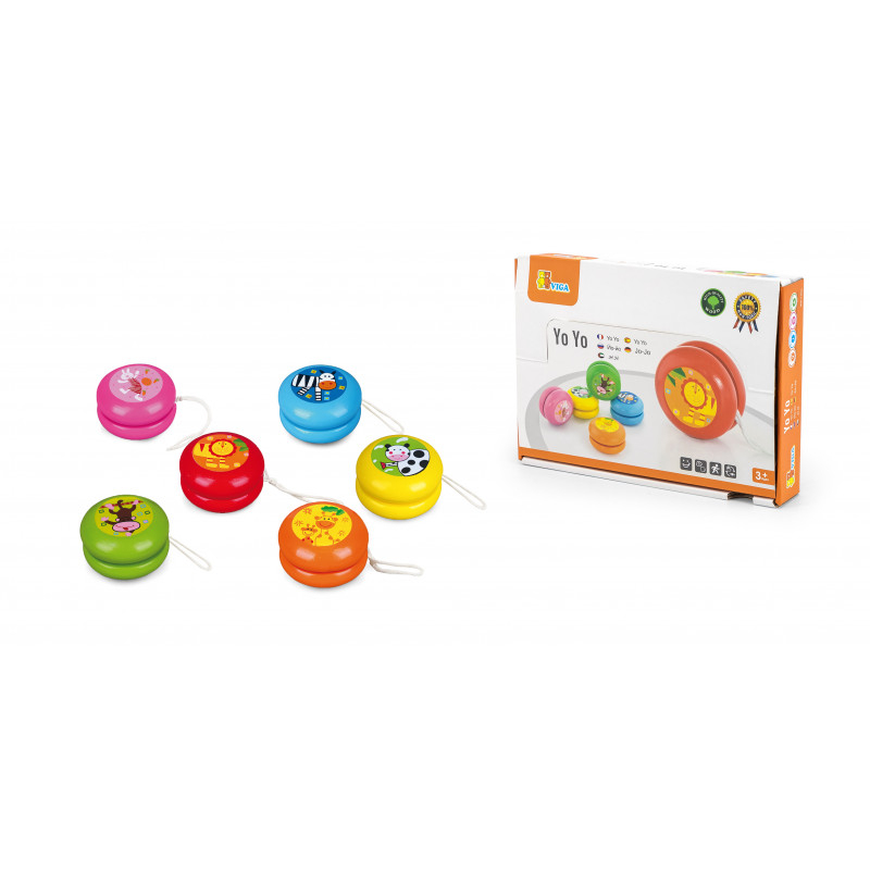 Fabricata din lemn si potrivita pentru trucuri, aceasta jucarie Yo-Yo colorata, va oferi ore nelimitate de distractie, contribuind, de asemenea, la imbunatatirea abilitatilor motorii fine.
