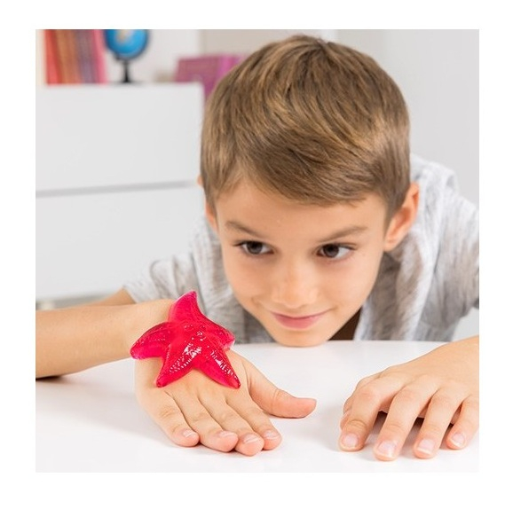 Conține: Agent natural de fixare - 100% natural Glicerină Bază spumantă 1 Parfum 3 Coloranți vibranți Forme pentru turnarea săpunurilor bețișor pentru amestecat lunguriță recipient pentru preparare Instrucțiuni detaliate pentru ghidare pas cu pas Instrucțiuni de folosire: Se adaugă: 5 ml de amestec de glicerină + 5 lingurițe de agent de fixare(conține agenți naturali de îngroșare) - se amestecă bine după fiecare pas Se adaugă : 10 ml de bază spumantă + 20 de picături de parfum Pentru a obține culoare dorită adaugăm coloranții în cantitățile indicate de instrucțiuni Se completează cu apă fierbinte până la măsura de 50 de ml de pe recipient Se toarnă amestecul într-una din formele cu animale marine Repetă procesul până când toate formele sunt umplute Așteaptă aproximativ o oră până cand săpunurile se întăresc La final ai obținut sapunuri amuzante cu textură de jeleu! Vârsta recomandata: 8 ani + Dimensiuni cutie: 38 x 28 x 4 cm Brand: Sentosphere AVERTIZARE: De utilizat sub supravegherea unui adult.